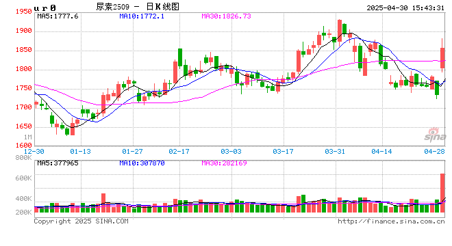 2025年4月30日,国内期货主力合约涨跌互现,SC原油跌超3%,玻璃、氧化铝、菜粕、低硫燃料油(LU)、纸浆、燃料油跌超2%,豆粕跌近2%;涨幅方面,尿素涨超6%,集运指数(欧线)涨超3%,烧碱涨超2%。