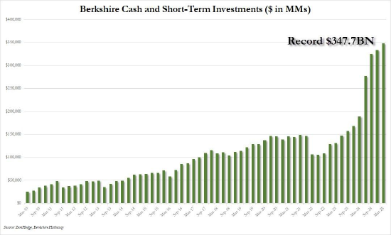 去年,当伯克希尔的现金储备再创新高时,他抱怨缺乏有意义的交易,这些交易本可以让公司实现 “惊人的业绩”。他说,少数几家能够对伯克希尔产生重大影响的美国公司已经 “被我们和其他人反复研究过无数次了”。从那以后,随着这位亿万富翁削减了他在苹果和美国银行的持股,同时避免进行重大交易,伯克希尔的现金储备不断增加,截至 3 月 31 日达到了 3477 亿美元。